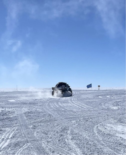 Chiara and Carlo leaving LDC in the Arctic truck. Photo by B. Seth.