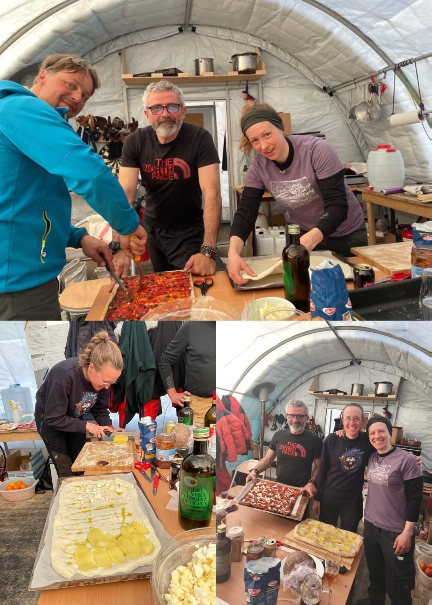 Concentrated work in the BEOIC drilling tent. Romain, Carlo and Philippe are cleaning the hole from reaming debris.